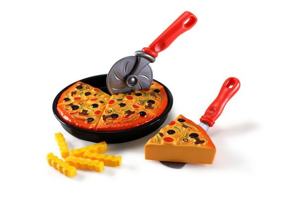 1個可切片披薩、1個披薩盤、1罐番茄醬、1罐黃芥末醬、1支雪糕、1支霜淇淋、2份義大利麵、1份薯條、1把披薩滾刀、1支披薩鏟